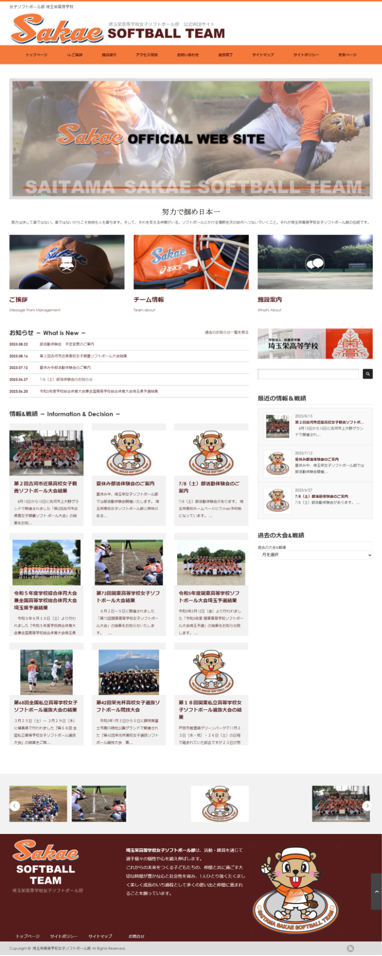 制作の目的は、父兄へのお知らせや大会の記録をアピールすることで部員確保につなげたいとの希望があり、部員の紹介や設備の充実などの紹介ページを設けました。