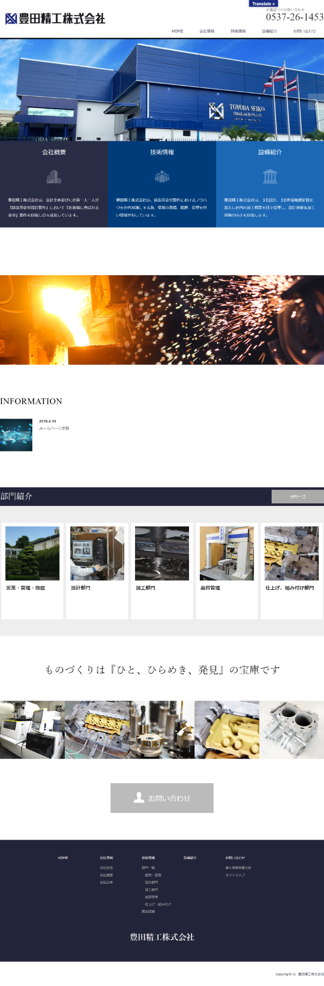 金型製造に関しては、専門知識を活かすことができるため、仮テキストを入れてデザインファーストで制作を行いました。現在は、営業・求人用としてパンフレットの代わりにしており、改善のため検索エンジンからはブロック中となります。