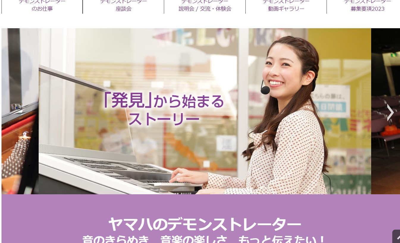 ピアノ・エレクトーンのデモンストレーター求人募集のWebサイトは、